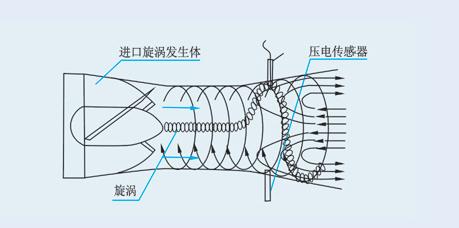 當(dāng)沿著軸向流動的流體進入流量傳感器入口時,旋渦發(fā)生體強迫流體進行旋轉(zhuǎn)運動,于是在旋渦發(fā)生體中心產(chǎn)生旋渦流,旋渦流在文丘利管中旋進,到達收縮段突然節(jié)流使旋渦流加速,當(dāng)旋渦流進入擴散段,因回流作用強迫進行旋進式二次旋轉(zhuǎn)。此時旋渦流的旋轉(zhuǎn)頻率與介質(zhì)流速成正比,并為線性。兩個壓電傳感器檢測的微弱電荷信號經(jīng)前置放大器差動放大、濾波、整形后變成兩路頻率與流速成正比的脈沖信號,同時處理電路對兩路的脈沖信號進行相位比較和判別,剔除干擾信號,而對正常的流量信號進行計數(shù)處理。